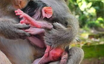 In the heart of the forest, a tiny newborn monkey begins life facing challenges from the very first day. His body is weak, and his movements are slow, but his will to survive is strong. His mother, though loving and protective, struggles to produce enough milk to feed him. She watches him closely, holding him close to her chest and trying her best to comfort him with warmth and care.